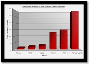 To date, more than 30 treatments have been administered, with the majority addressing conditions for which there are currently no effective therapies.