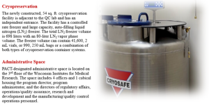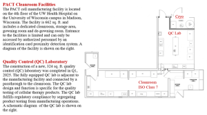 The PACT facilities consist of a Cleanroom, a Quality Control Laboratory, cryopreservation, and administrative spaces. Authorized PACT manufacturing personnel are specifically trained/qualified/certified prior to performing GMP operations.